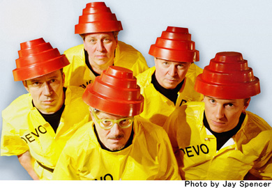 74年アメリカで結成。「DEVO」とは「De-Evolution」の略であり、おそろいのつなぎ、「エナジードーム」と呼ばれる円錐型の帽子、ロボットのようなぎこちない動きなどで退化した人類の姿を表現している。大学在学中に運命的な出会いをしたMark MothersbaughとGerald Casaleが自主映画の制作を始め、そのサウンドトラック制作の為に結成された。テクノ・ポップ、ニューウェーブの元祖と呼ぶべきバンドであり、彼等に影響を受けたミュージシャンは数知れない。90年活動を停止したが、時折活動を再開しており、SUMMER SONIC 03では23年ぶりに衝撃の来日を果たした。